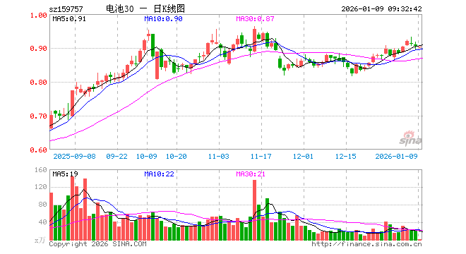 1月9日,电池ETF景顺(159757)开盘跌0.44%,报0.901元。电池ETF景顺(159757)重仓股方面,宁德时代开盘跌0.01%,比亚迪涨0.18%,亿纬锂能涨0.00%,三花智控跌0.29%,华友钴业跌1.48%,先导智能跌0.02%,赣锋锂业跌0.80%,国轩高科涨0.05%,欣旺达涨0.04%,天赐材料跌0.88%。