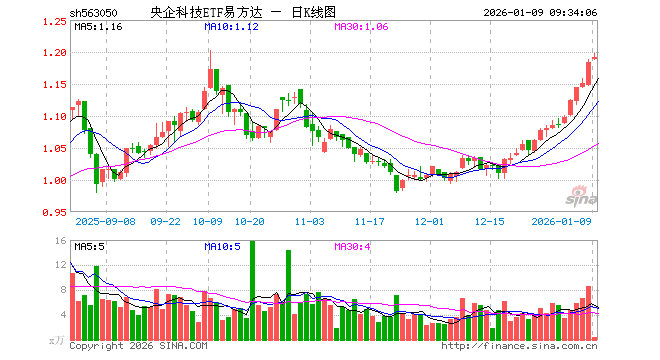 1月9日,央企科技ETF易方达(563050)开盘涨0.42%,报1.188元。央企科技ETF易方达(563050)重仓股方面,海康威视开盘跌0.10%,深南电路跌1.55%,长电科技涨0.69%,中航沈飞涨2.73%,中航光电涨0.83%,航发动力涨2.19%,澜起科技跌0.82%,中芯国际跌0.77%,光迅科技跌0.83%。