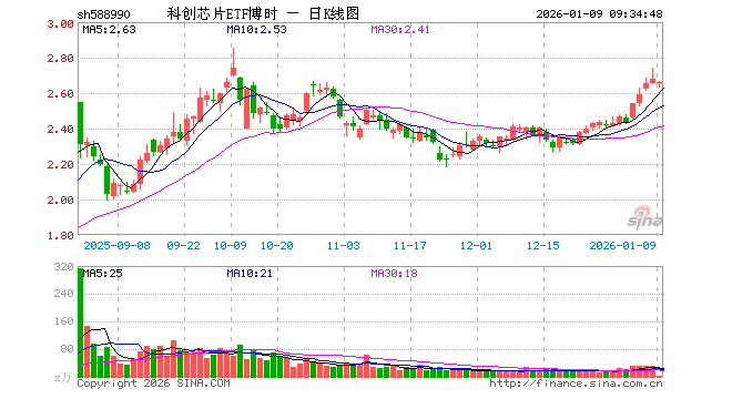 1月9日,科创芯片ETF博时(588990)开盘跌0.78%,报2.656元。科创芯片ETF博时(588990)重仓股方面,海光信息开盘跌1.52%,澜起科技跌0.82%,中芯国际跌0.77%,寒武纪跌1.66%,中微公司跌3.89%,芯原股份跌0.06%,华虹公司跌1.14%,沪硅产业跌1.90%,华海清科跌0.16%,晶晨股份跌0.27%。