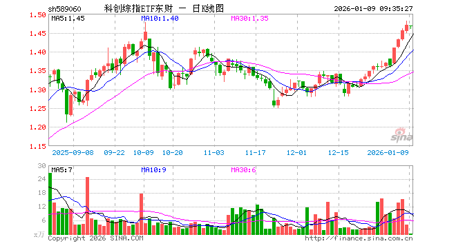 科创综指ETF东财(589060)业绩比较基准为上证科创板综合价格指数收益率,管理人为东财基金管理有限公司,基金经理为吴逸,成立(2025-03-19)以来回报为47.19%,近一个月回报为10.00%。