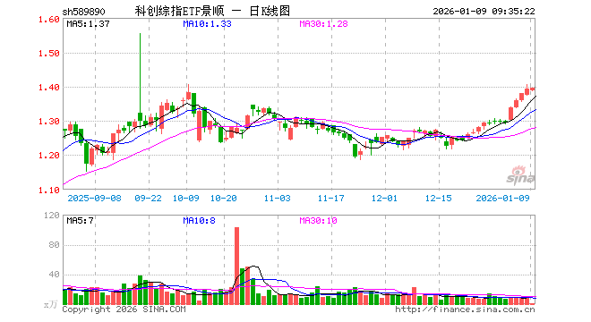 科创综指ETF景顺(589890)业绩比较基准为上证科创板综合价格指数收益率,管理人为景顺长城基金管理有限公司,基金经理为金璜、龚丽丽,成立(2025-02-26)以来回报为39.70%,近一个月回报为9.79%。