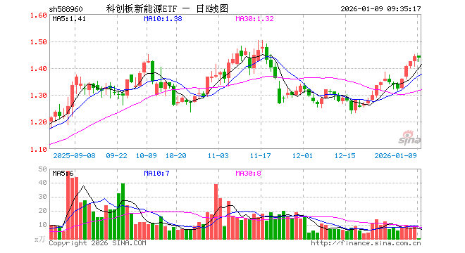 1月9日,科创板新能源ETF(588960)开盘涨0.21%,报1.446元。科创板新能源ETF(588960)重仓股方面,天合光能开盘跌1.67%,晶科能源跌1.25%,天奈科技涨0.08%,阿特斯跌1.81%,大全能源跌3.32%,厦钨新能跌1.03%,容百科技跌0.93%,孚能科技跌0.31%,聚和材料跌1.99%,嘉元科技跌0.79%。