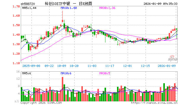 科创50ETF中银(588720)业绩比较基准为上证科创板50成份指数收益率,管理人为中银基金管理有限公司,基金经理为赵建忠,成立(2025-03-27)以来回报为46.39%,近一个月回报为7.87%。