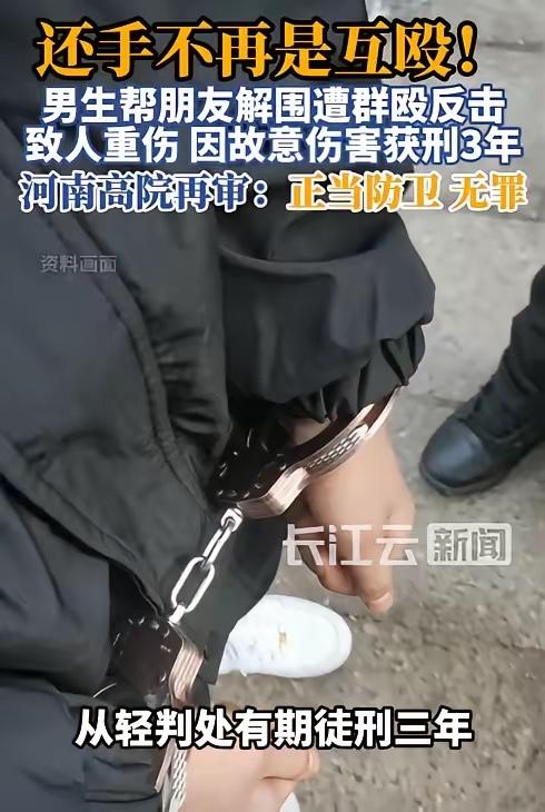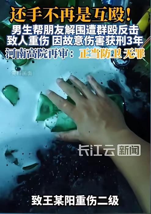 河南,一名男生见好友被打,上前劝阻时遭到多人围殴。男生倒在地上时,正好摸到一个碎酒瓶,于是立即反击,谁知一时失手造成其中1人重伤。后男生被判了3年有期徒刑,但男生认为自己面对多人围殴,迫于无奈才进行的反击,应当属于正当防卫,二审维持了一审判决。男子还是不服,提起申诉。再审法院给出了不同看法。 事情发生在2021年底的一个夜晚,男生张某新和好友张某源等人一起参加饭局,原本热闹的聚会,却因为一场突如其来的争执打破了平静。 饭局上,有人无意间提起张某源曾是同场姚某申女友的前男友,这话让姚某申心里很不舒服。 散场后,姚某申伙同李某深等人,借着送张某新、张某源回家的名义,把车开到了某镇初级中学附近的偏僻处,随后便对张某源动手动脚,想趁机泄愤。 张某新见状不忍,当即上前劝说,还提出再闹就报警,可这善意的劝阻不仅没平息冲突,反而让自己成了被攻击的目标。 李某深二话不说就扇了张某新一个耳光,随后几人一拥而上,对着他拳打脚踢,混乱中还有人把他狠狠踹进了路边的沟里。 沟底凹凸不平,张某新被几人围着持续殴打,头部、身上不断传来剧痛,视线都开始模糊。慌乱中,他的手摸到了一块冰凉锋利的东西,是之前有人丢弃的碎酒瓶。 那一刻,恐惧和求生的本能让他握紧了碎片,朝着围殴自己的人胡乱挥去,只想逼退对方。 没想到这一下反击,直接导致参与殴打他的王某阳面部和眼睛受伤,事后经鉴定,损伤程度达到了重伤二级。 案件很快进入司法程序,一审法院审理后认为,张某新的行为构成故意伤害罪,考虑到他是初犯、有自首情节且认罪认罚,判处其有期徒刑三年。 这个结果让张某新难以接受,他始终觉得自己是在遭受不法侵害时被迫反击,完全符合正当防卫的条件,怎么就成了犯罪?带着满心的不解,他提起了上诉,可二审法院最终还是维持了原判。 判决生效后,张某新没有放弃,他先后向原二审法院和河南省高级人民法院提出申诉,坚持要为自己讨一个公道。 这起案件的关键,其实在于区分正当防卫与故意伤害的界限,而这正是司法实践中备受关注的难点。 根据我国刑法第二十条规定,为了制止正在进行的不法侵害而采取的反击行为,对侵害人造成损害的属于正当防卫,不负刑事责任,但防卫行为明显超过必要限度造成重大损害的,就要承担相应责任。 再审过程中,法院调取了完整的案件证据,包括事发时的监控录像、目击者证言以及双方的供述,结合案件起因、冲突升级过程等细节综合研判。 最终,河南省高院给出了截然不同的结论:张某新对引发冲突的起因毫无关联,也不是主动参与打斗,而是因为劝阻不法侵害遭到殴打,其反击行为属于自卫,并非互殴。 他当时被多人围殴于沟底,处于极度危险的境地,随手捡起碎酒瓶反击是出于本能,并未明显超过必要限度,因此认定其行为构成正当防卫,依法不负刑事责任,改判无罪。 值得一提的是,案发时张某新还是一名在校大学生,因为这场官司不得不暂停学业。 再审判决生效后,承办法官还特意前往他的原学校协调,帮助他恢复了学籍,让他能继续完成学业。 这起案件的反转,也让更多人看到了司法对“法不能向不法让步”法治精神的坚守,这场跨越数年的风波终于落幕,而他的故事,也赋予更多人底气:面对不法侵害,不必一味忍让,合理的防卫值得法律保护。