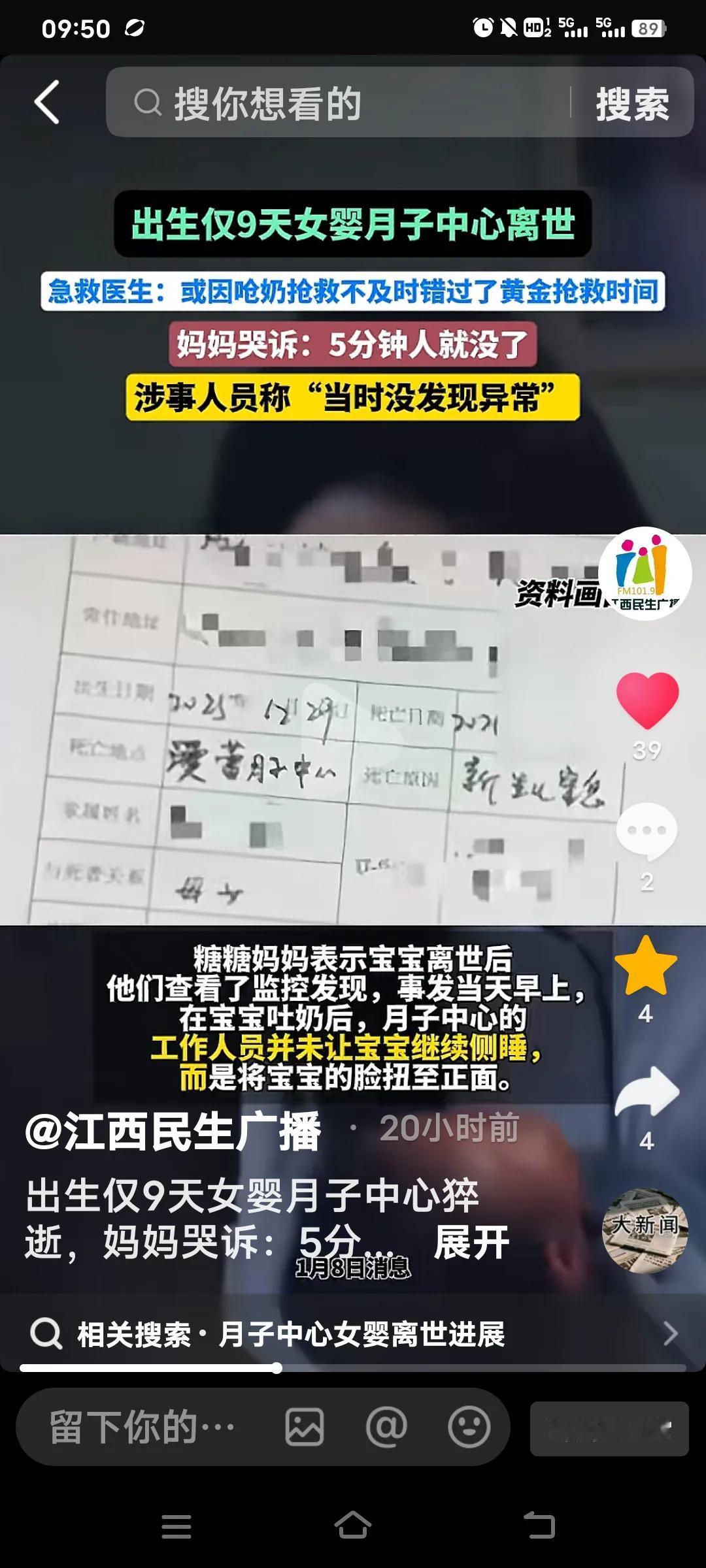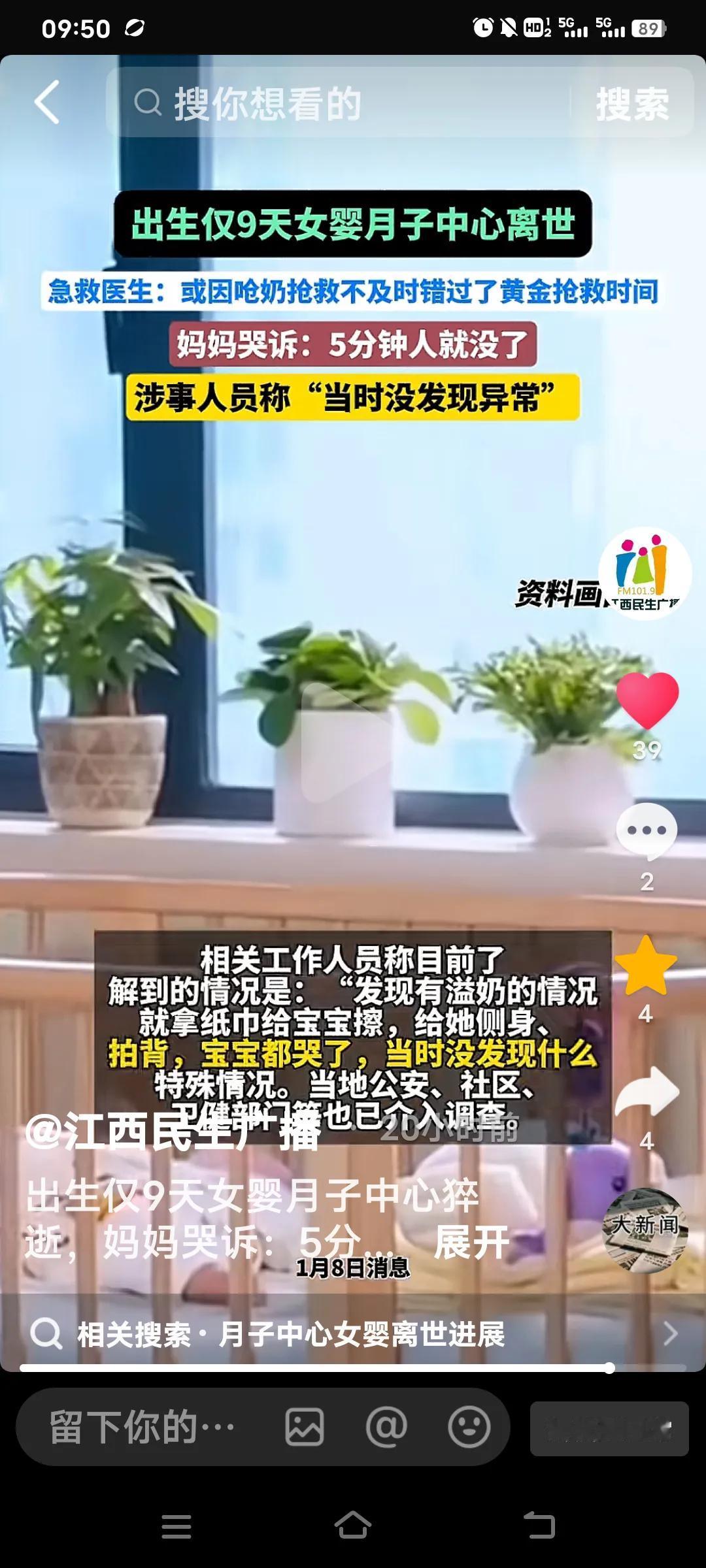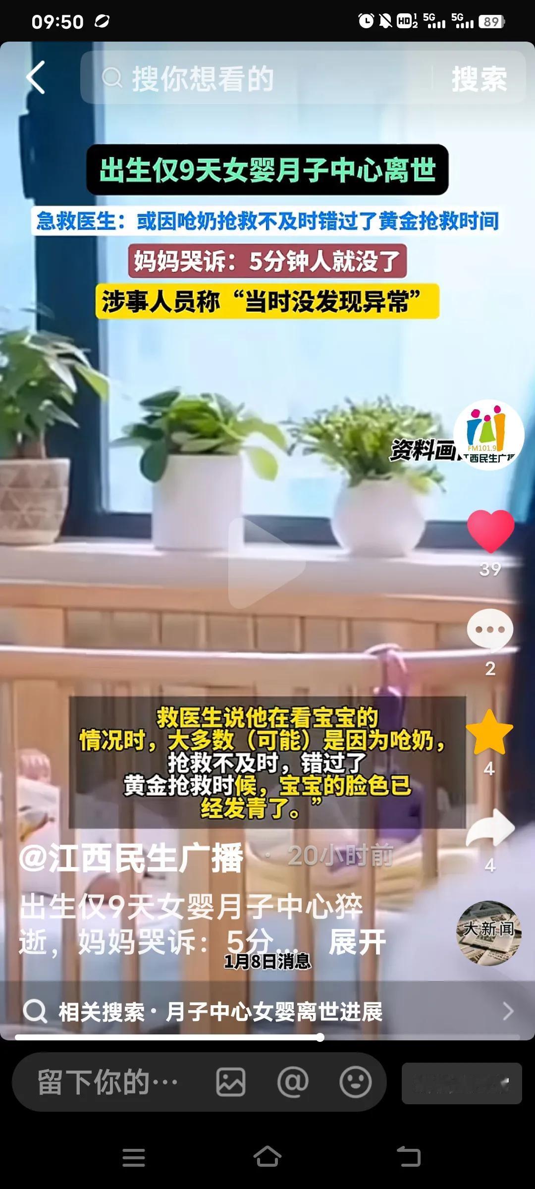 广东茂名宝宝离世这事令人痛心不已。1月3日,糖糖妈妈入住月子中心,入住仅4天后,刚出生9天的宝宝就夭折了。1月6日早上7点41分,工作人员叫醒妈妈,告知宝宝身体不适。然而,妈妈哭诉:5分钟孩子就没了心跳,大概率由呛奶引发。 查看监控后发现,宝宝吐奶后,工作人员操作有误,未让宝宝侧睡,反而让其扭脸正面睡。急救医生表示,孩子错过黄金抢救时间。可工作人员竟称当时未发现异常,还说给宝宝侧身、拍背时,宝宝还哭了。 专业月子中心理应提供24小时监护,及时捕捉宝宝细微的体征变化,可这位工作人员实在太过失职,怎能拿孩子的生命“开玩笑”!此类情况已非个例。真心希望相关部门展开彻查,给家长一个公道,必须严惩责任人,方能起到杀一儆百的效果。 宝宝离世 新生儿离世 广东生小孩 宝宝病逝