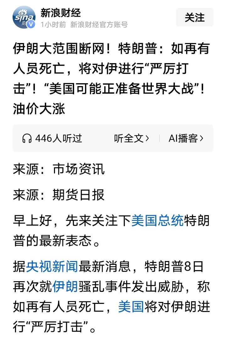 还真好意思说这话?前几天跑去别人家里,一顿狂轰滥炸,造成80多人死亡,还把人家总统掳走了,而现在伊朗家里发生抗议,有人员伤亡,他现在又要出来主持公道了。 这双标玩的真溜,合着怎么说都是你有理呗,海盗后裔的霸权思维真是越来越露骨了。以前还拉了一块自由和民主作为遮羞布,装绅士到处忽悠,现在遮羞布都不要了,到处威胁别人,一副顺者昌逆者亡的做派,太霸道了! 好动刀兵者必亡于刀兵,好战必亡!