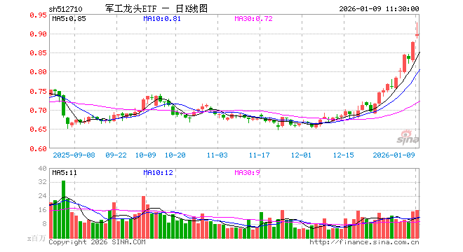 军工龙头ETF(512710)业绩比较基准为中证军工龙头指数收益率,管理人为富国基金管理有限公司,基金经理为牛志冬、王乐乐,成立(2019-07-23)以来回报为74.71%,近一个月回报为28.44%。