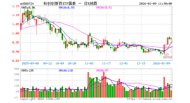 1月9日,截止午间收盘,科创创新药ETF国泰(589720)涨0.41%,报0.971元,成交额6980.59万元。科创创新药ETF国泰(589720)重仓股方面,百济神州截止午盘涨0.01%,百利天恒涨2.25%,艾力斯涨1.45%,君实生物涨0.45%,泽璟制药跌1.04%,荣昌生物跌0.41%,博瑞医药跌0.28%,特宝生物跌1.04%,益方生物跌1.99%,迈威生物跌1.30%。