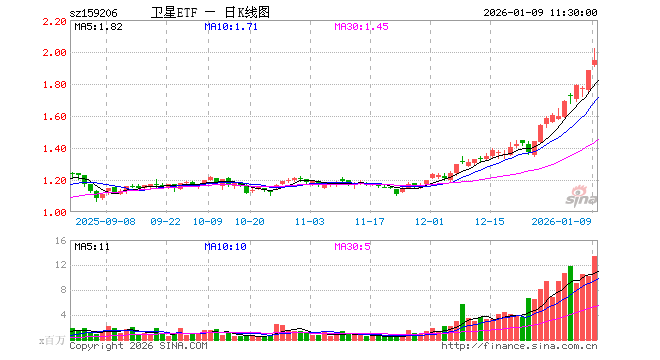 1月9日,截止午间收盘,卫星ETF(159206)涨3.29%,报1.945元,成交额26.48亿元。卫星ETF(159206)重仓股方面,睿创微纳截止午盘涨2.73%,航天电子涨6.60%,中国卫星涨1.77%,复旦微电涨2.81%,上海瀚讯涨12.70%,中兴通讯跌0.35%,华力创通涨3.50%,电科芯片跌1.69%,隆盛科技涨1.84%,振芯科技涨3.13%。