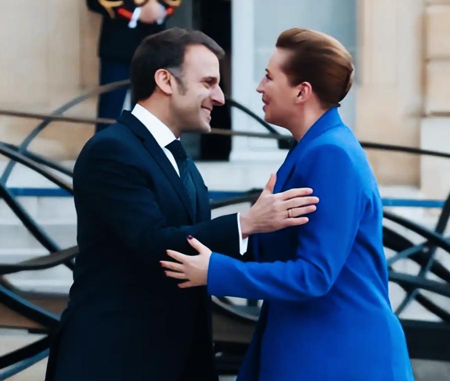 马克龙和丹麦女首相见面很热情啊! 两人脸上都洋溢着满脸的笑容! 两人手的姿势还挺