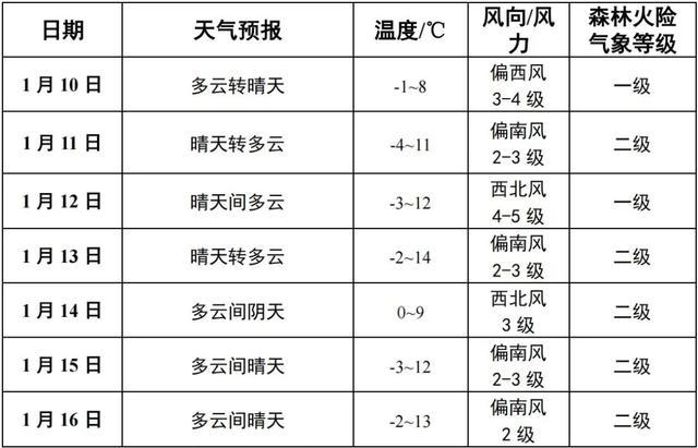 商洛新闻网讯:今天(1月9日)10时,商洛市气象台发布未来一周天气预报,根据最新气象资料分析,受冷涡后部偏北气流影响,未来一周商洛市以多云到晴天气为主,10日、12日有大风天气,森林火险气象等级较高。具体预报如下: