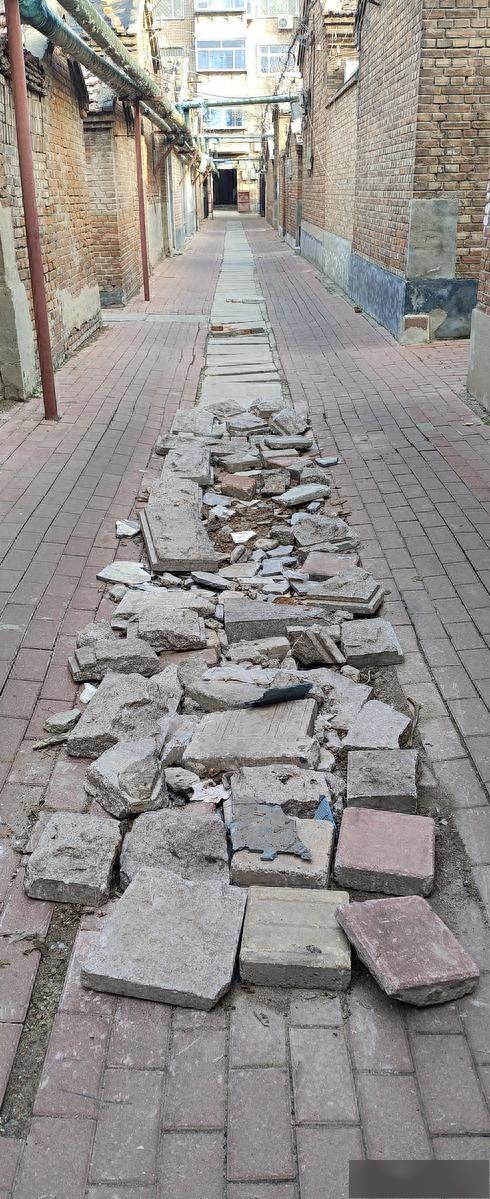 记者观察发现,损坏盖板及堆积碎石的地面在胡同南段中间位置,占地长约6米,宽约1米。两侧留出的通道,仅能通行自行车和电动自行车。