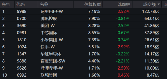 注:以上为恒生科技指数成分股,仅做展示,不作为个股推介。