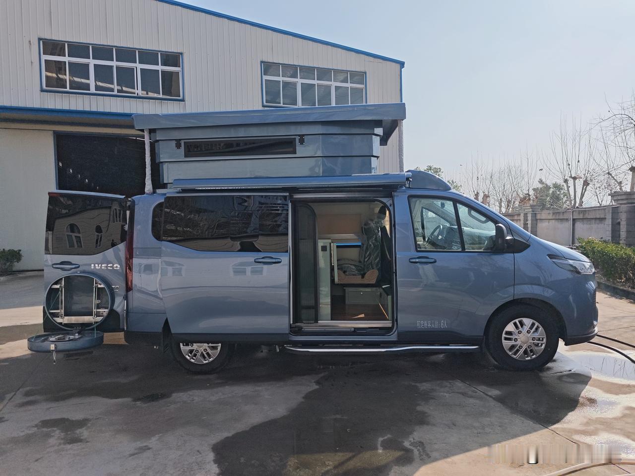 车友钟总定制的一台升级版的依维柯聚星硬升顶小房车令人眼前一亮!该款车融入了全新的设计元素,布局更加实用 整车外观和内饰相互辉映,底盘外观颜色光鲜亮丽,蓝色外观耐脏好看而且不张扬,车身尺寸控制的恰到好处,整车长度仅为5575,宽度2080高度2170,能够通过国内大部分地库,不用惧怕限高杆,通过性更好,而且整车在降顶状态下和家用MPV没什么区别 整车配的是2.0T柴油发动机,百公里油耗仅为7升左右,平时上班通勤代步也经济,车顶采用的是倒金字塔的结构,寓意步步高升,严丝合缝,美轮美奂,犹如雨后春笋拔地而起,气势磅礴,很有观赏性,这台车相较于常规布局增加了一台5公斤洗衣机,对于长途旅行来讲更加友好,平时还能洗大件衣服,另外把68升双开门冰箱设计在尾部,装在柴油灶旁边更加方便,平时拿取食物烹饪更合理,因为在前部还配有18升扶手冰箱,一前一后,分工明确,车内空间通透敞亮,这样一台杨骐玮全新设计的依维柯硬升顶小房车大家喜欢吗?