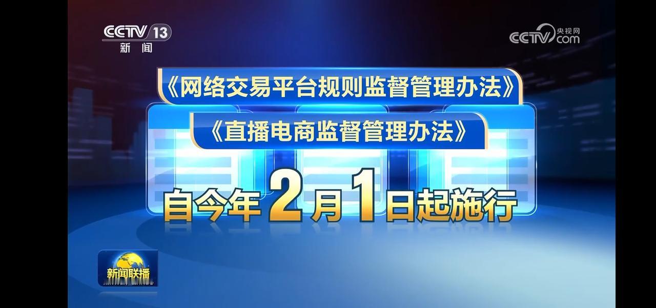 市场监管总局和国家网信办联合发布,网络交易平台规则监督管理办法,直播电商监督管理办法于2月1日开始施行。