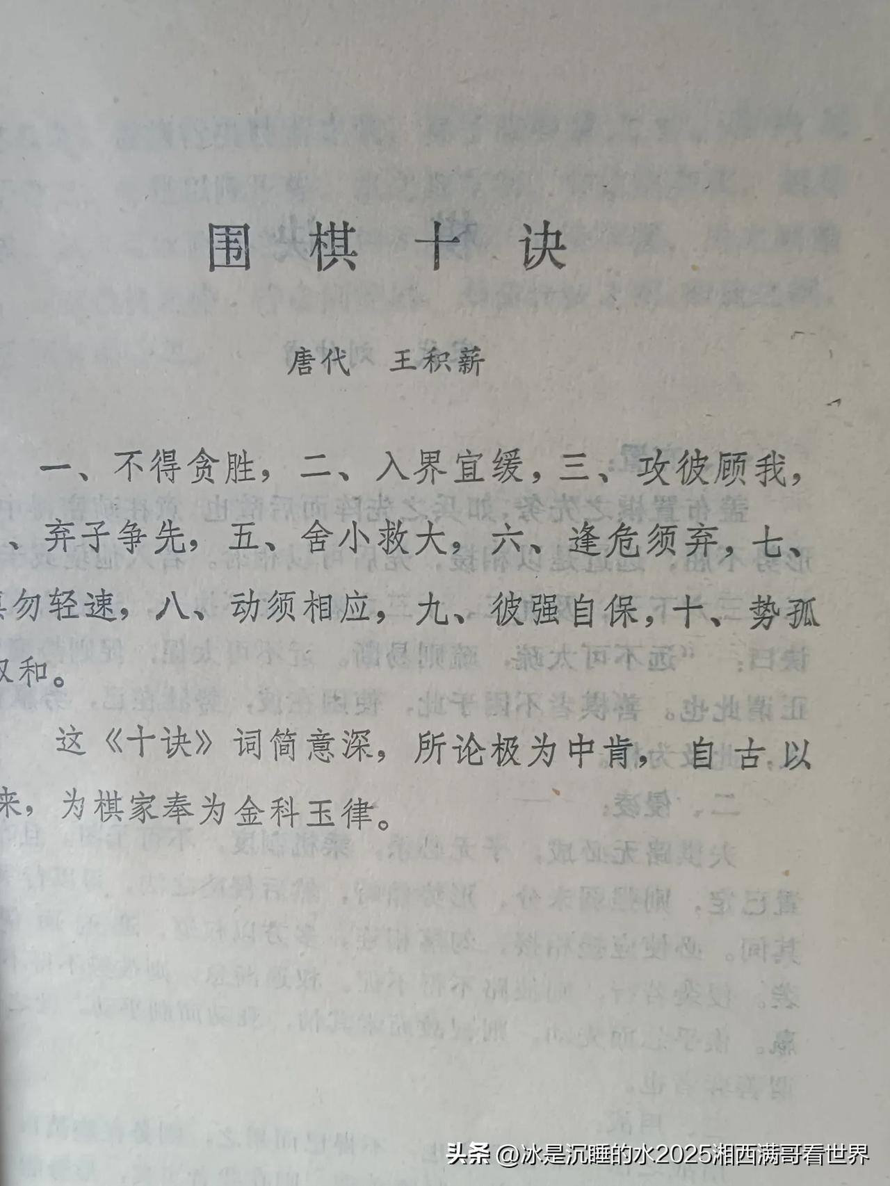 分享一组个人青年时期学围棋到新华书店买的《古今围棋名局鉴赏》,过惕生、刘赓仪、程志钊著,收录了中外古今围棋名局,内容通俗易懂,里面有陈毅元帅的题词,有凝聚古代中国围棋大师的《围棋十决》、《棋经十三篇》等秘籍,🈶鼎鼎大名的王积薪、刘仲甫、过百龄、黄龙士、徐星友、范西屏、施襄夏等古华夏围棋大师,也有近代的过惕生,现代的陈祖德、聂卫平,日本方面则有吴清源、桥本宇太郎、坂田荣男、藤泽秀行、林海峰、大竹英雄、石田芳夫、加藤正夫、小林光一,群星闪耀,才气横溢。 在AI深度改变围棋的今天,人类职业围棋大师的围棋与AI的围棋相互碰撞融合,依旧散发着古老东方智慧的光芒。 围棋