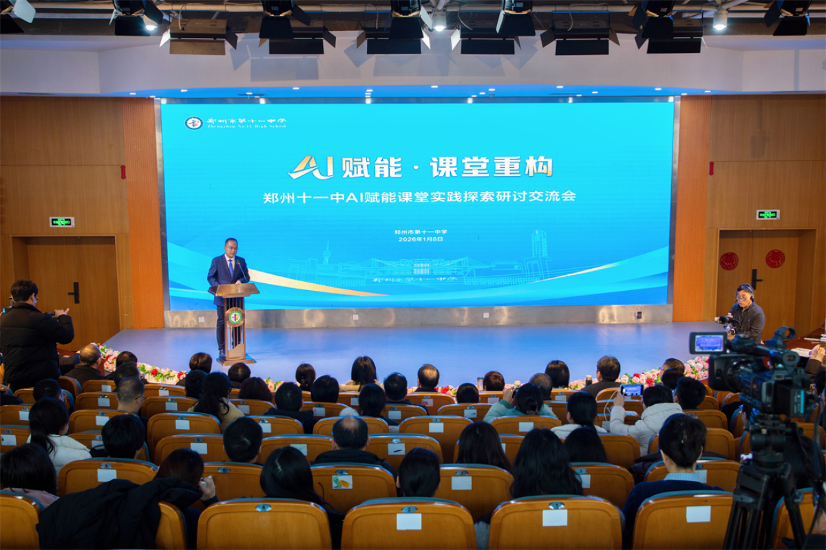 为推动人工智能与基础教育深度融合,1月8日,郑州市第十一中学举办AI赋能课堂实践探索研讨交流会。河南省基础课程与教学发展中心的领导专家、名校长培训班代表,对口支援学校、郑州市第六教研共同体成员学校以及郑州市第十一中学教育集团成员学校等单位的教师齐聚一堂,共同见证AI技术为课堂教学带来的革新与突破。