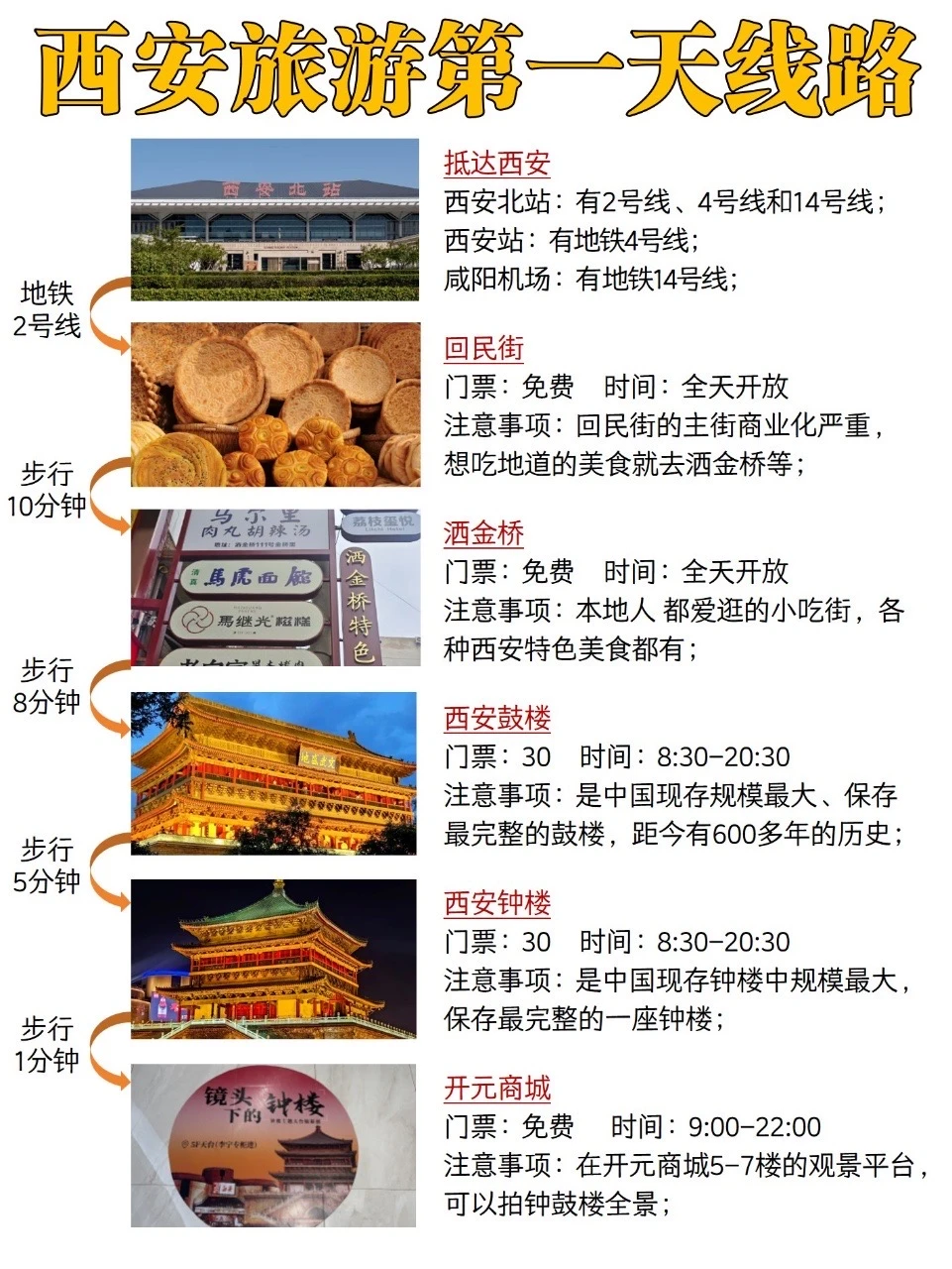 第1️⃣天:抵达西安——回民街——洒金桥——西安鼓楼——西安钟楼——开元商城
