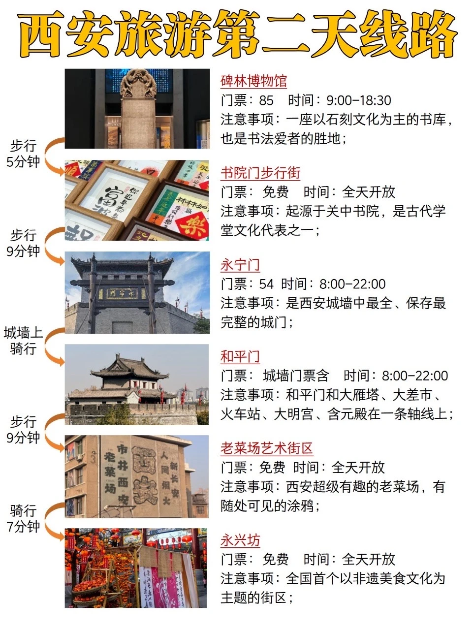 第4️⃣天:碑林博物馆——书院门步行街——西安城墙永宁门——和平门——老菜场艺术街区——永兴坊