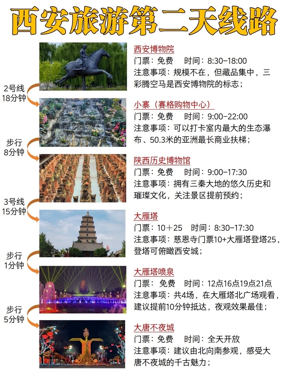 第2️⃣天:西安博物院——赛格购物中心——陕西历史博物馆——大雁塔——大雁塔音乐喷泉——大唐不夜城