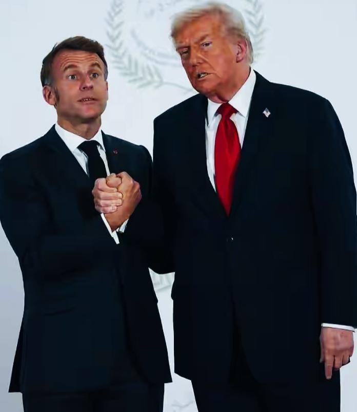 特朗普和马克龙握手时,用了多大的力气呢? 特朗普的手部皮肤颜色就说明了一切,用劲