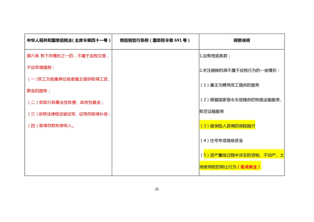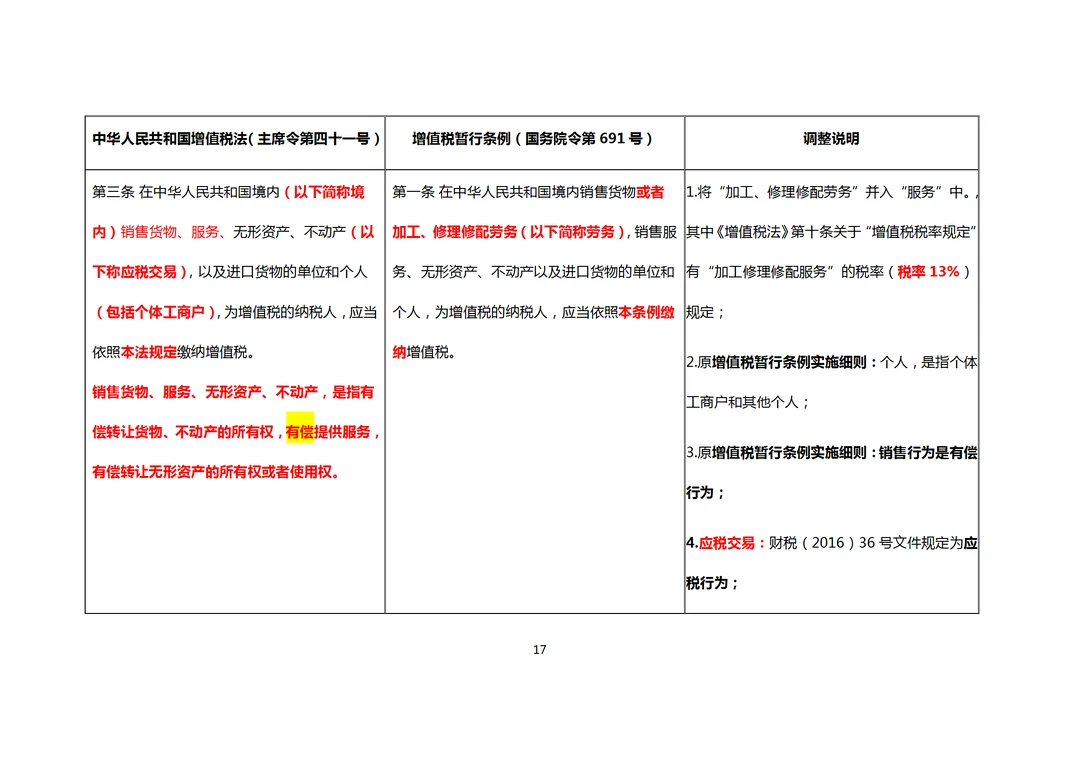 增值税法与暂行条例对照说明表