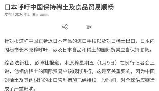 日本朝我们喊话了!1月9日,根据外媒报道,日本官房长官木原稔在例行记者会上表示,他相信稀土的国际贸易应该顺利进行,这是至关重要的,因为中国对稀土及其他材料的出口管制措施已经持续一段时间,对全球供应链造成了严重影响。日本对中国的食品出口也应当保持顺畅。 从拍桌子到说好话,日本态度急转弯的背后,是我们两套反制组合拳,实实在在用在了他们的七寸上。 先看稀土。这个被日本称为“工业维生素”的战略资源,63.8%依赖中国进口。2026年初我们升级两用物项管制,明确禁止稀土流向军工领域——直白说,就是“造导弹的稀土别想从中国拿”。 消息一出,丰田、索尼的采购部门连夜盘点库存:丰田混动汽车的电机磁铁,索尼相机的稀土光学元件,都指着中国的镝、铽过日子。更狠的是审批节奏:去年11月日本首相高市早苗涉台言论后,稀土出口审批默默延长,《读卖新闻》急得直喊“库存只能撑两个月”。 数据最打脸:野村研究所测算,稀土断供三个月,日本GDP掉0.11%;断供一年,2.6万亿日元蒸发。这可不是纸上谈兵——2010年钓鱼岛事件,我们暂停稀土出口,日本车企直接停产,史称“稀土休克”。 16年后的今天,他们在重稀土上的依赖不降反升,镝、铽进口近乎100%靠中国。这次管制刚落地,日经指数当场跌了556点,企业界哀嚎:“求政府赶紧谈判,别让生产线停摆!” 再看食品。核污水排海当天,我们全面暂停日本水产品进口——要知道,中国曾是日本最大水产品市场,一年买走871亿日元的海鲜。 禁令之下,日本渔业协会急得跳脚:2024年对华出口暴跌29.1%,养殖户只能把鱼转内销,福岛渔民直接堵了岸田家门口。日本政府砸了1007亿日元“封口费”,结果钱没少花,渔民照样骂:“补贴能买回中国市场吗?” 更绝的是,我们的解禁始终“按科学办事”。2025年6月,国际原子能机构监测数据达标后,我们有条件恢复部分地区水产品进口。 这招让日本骑虎难下:想完全解禁?先证明你的鱼真的安全。现在日本一边求着重启牛肉进口(24年禁令刚松口),一边派军舰穿航台海刷存在感——结果呢?中方直接呛声:“想卖货,先老实点。” 日本语气变缓,不是突然“讲道理”了,是真扛不住了。军工方面,他们突破和平宪法搞扩军,高超音速导弹、F-15J升级都离不开中国稀土,管制令一下,自卫队的“强军计划”直接卡壳。 经济方面,2024年日本GDP增速仅1.1%,稀土断供叠加半导体反倾销(二氯二氢硅调查),东芝、信越化学的股价跌到管理层睡不着觉。连美国都泼冷水:“2010年的教训忘了?这次中国反制更狠。” 最讽刺的是,日本一边喊“供应链多元化”,一边偷偷依赖中国。2024年通商白皮书显示,1406种商品超一半进口自中国,比美国多2.5倍。 他们嘴上说“去中国化”,身体却很诚实——南鸟岛深海稀土开采要2027年才可能量产,远水解不了近渴;澳大利亚稀土矿,还得拉到中国提纯。说白了,离开中国供应链,日本工业分分钟“半身不遂”。 看透日本的小心思:喊“呼吁”是假,求活路是真。但我们的反制,从来不是乱拳出击。稀土管制只针对军工,民用贸易照常;水产品解禁看科学数据,不搞一刀切。这背后,是对中日经贸格局的清醒认知——我们需要日本的高端制造,日本更需要中国的市场和资源。就像王毅外长说的:“按规矩办事。”你守规矩,我开绿灯;你搞小动作,我不客气。 现在的日本,像极了2010年的翻版:挑衅在先,吃亏在后,最后不得不回到谈判桌。但这次不同的是,中国的反制工具箱更丰富,底气更足。 日本若真想缓解僵局,该做的不是“呼吁”,而是先把涉台错误言论收回去,把核污水的“科学”做实了——毕竟,我们手里的牌,远比他们想象的多。