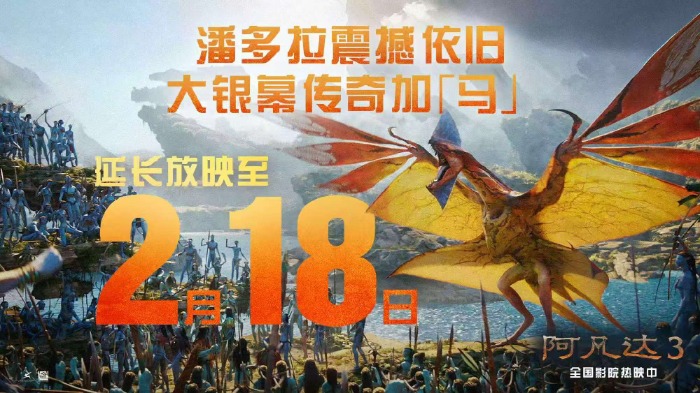 1月9日当天,《阿凡达3》官方宣布密钥延期至2月18日。值得一提的是,1月8日,《疯狂动物城2》第二次延长密钥,公映时间延长至2月25日——直接从从元旦档加盟春节档了。
