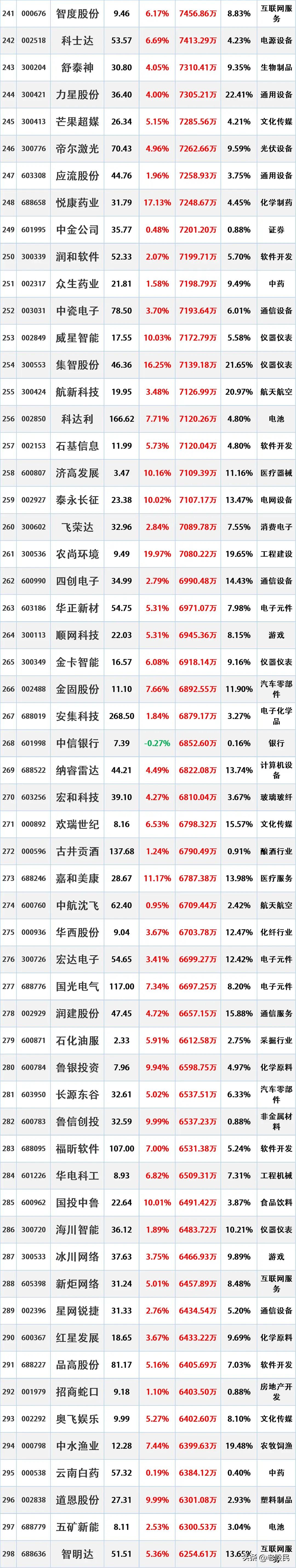 尾盘资金流入,2026年1月9日主力资金大幅流入的股票名单。 统计时间:202