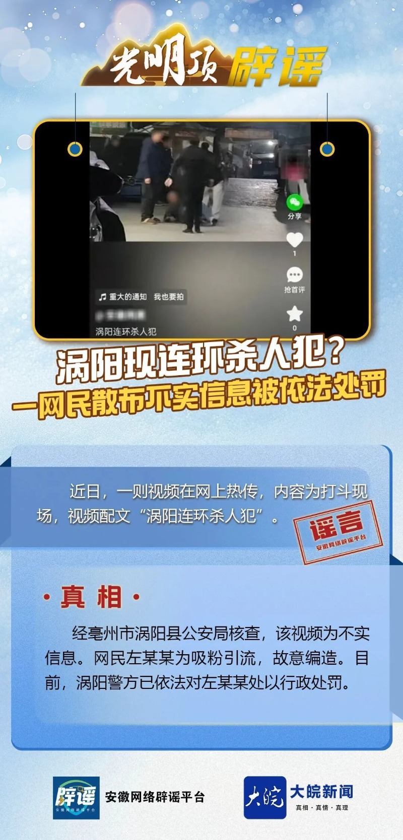 光明顶辟谣 | 涡阳现连环杀人犯?一网民散布不实信息被依法处罚