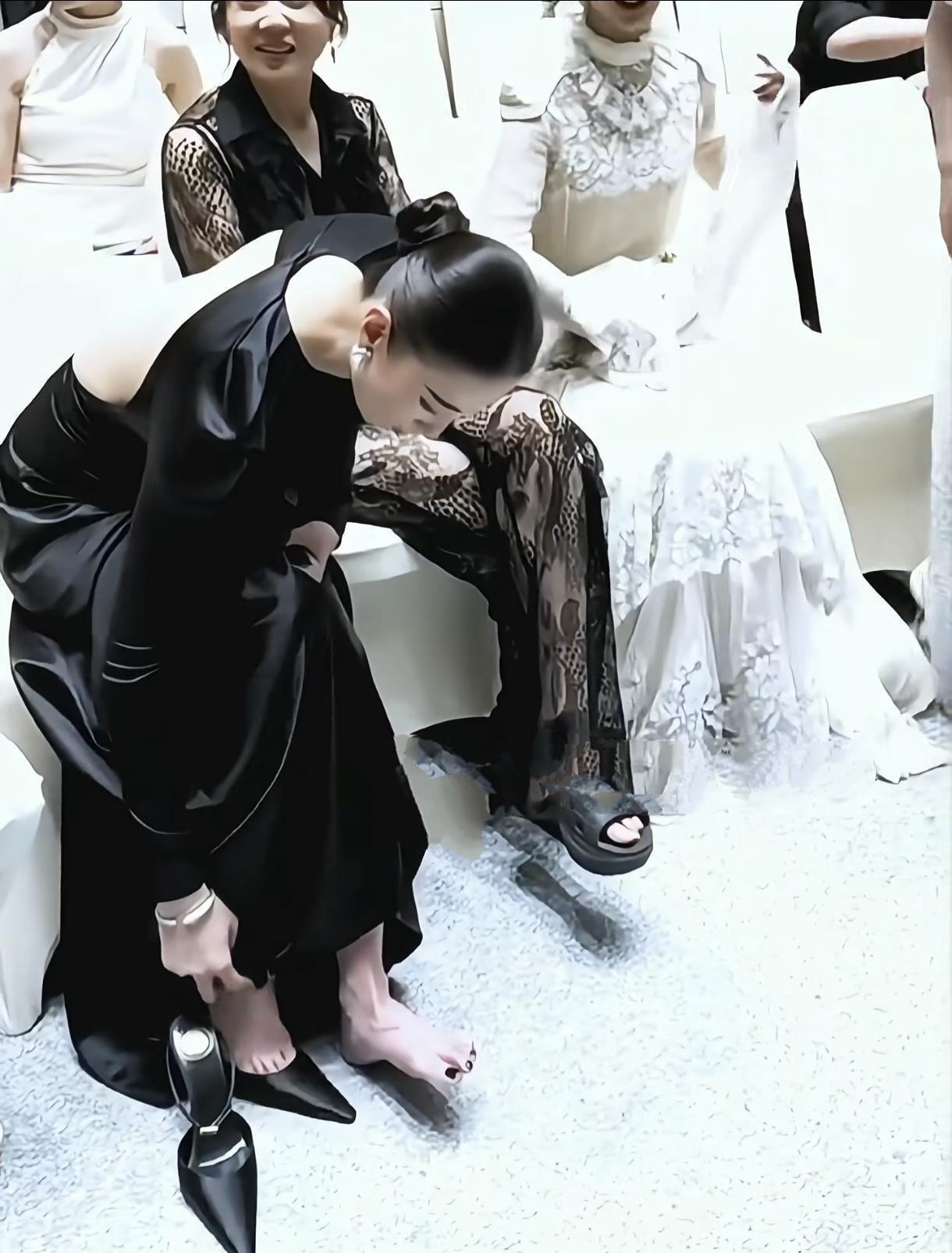 红毯女王闫妮,竟被一双高跟鞋逼到当场换拖鞋? 这画面太美我不敢看! 别笑! 这根本不是闫妮一个人的窘境。 高跟鞋就是女明星的“美丽刑具”,走红毯是战袍,下了台就得立刻“上刑”。 从舒淇到杨幂,谁没在后台光脚过? 这哪是时尚,分明是酷刑! 难道这双鞋的宿命,就只能是“红毯限定”吗? 当“红毯前后反差”成了新常态,造型师们还在装瞎? 现在聪明的造型师都备着3-4双同款不同跟高的鞋,甚至催生了折叠平底鞋这种“救命神器”。 可为什么还有人让艺人受这份罪? 高跟鞋的美丽,难道必须用脚趾的血肉模糊来换?