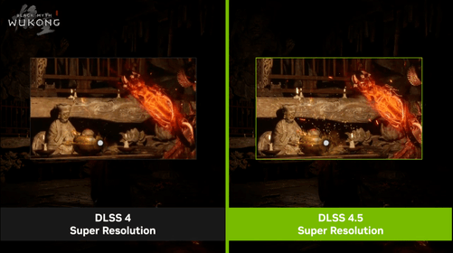 首先来介绍下DLSS4.5的超分辨率技术,该技术可以理解为是DLSS2超分辨率技术的升级,引入全新的第二代Transformer模型,因此所有RTX显卡用户都支持使用。在开启DLSS4.5后,相比上代的超分辨率技术,新一代使用Transformer模型的超分辨率技术,能精准感知画面场景上下文,更智能的利用游戏引擎的像素采样与动态技术,在画质、拖影上有着非常大的升级,显著减少鬼影效果,正确显示闪烁粒子,呈现出更精细、更准确的光线与图像。