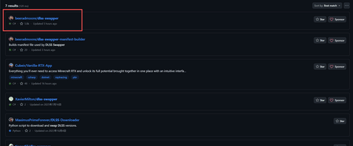 在右上角的搜索框输入DLSSSwapper,然后按回车键。