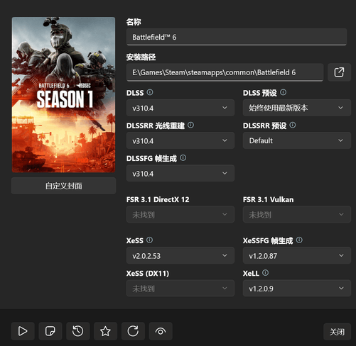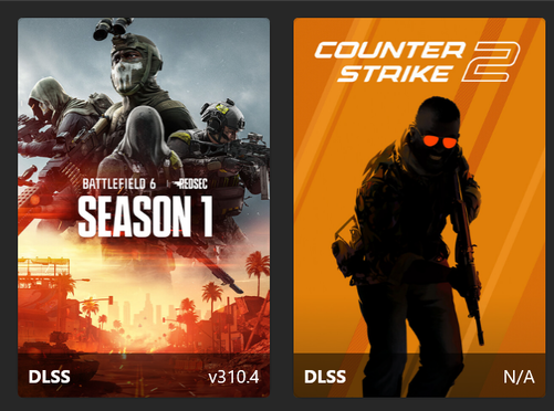 以上图为例,在右下角。《战地6》是有版本号的,而《CS2》则是N/A,说明了《CS2》通过该软件无法调节,且游戏也不支持DLSS技术。