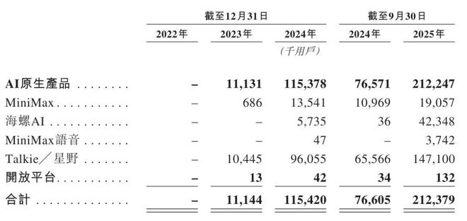 MiniMax的AI原生产品的付费用户数从2023年的约119,700名增至2024年的约650,300名,并于截至2025年9月30日止九个月进一步增至约1,771,600名。