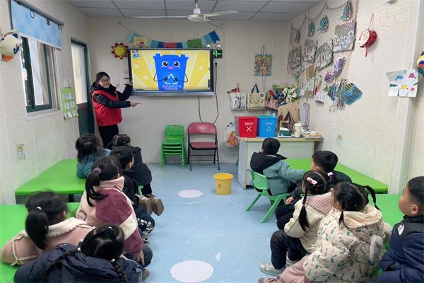动画“趣”讲解,分类知识润童心。活动伊始,志愿者们为小朋友播放了垃圾分类动画宣传片。片中可爱的卡通形象、浅显易懂的讲解,迅速吸引了小朋友们的注意力。通过动画生动直观的演绎什么是可回收物、有害垃圾、厨余垃圾和其他垃圾,这些抽象的分类概念在孩子们心中变得具体而清晰。这种寓教于乐的形式,巧妙地在幼小的心灵中播下了爱护环境、正确分类的文明种子,激发了小朋友们学习环保知识的浓厚兴趣。