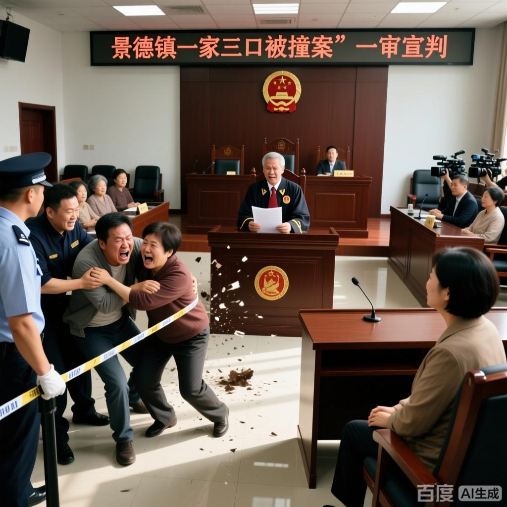 “景德镇一家三口被撞案”一审宣判 被告家属欲冲撞律师被摁住这起备受社会关注的“景德镇一家三口被撞案”一审宣判结果出炉后,法庭内气氛异常紧张。当审判长宣读判决完毕,被告家属情绪瞬间失控。他们似乎难以接受这样的结果,在短暂的沉默后,爆发出了激烈的抗议声。 其中几名情绪最为激动的家属,在相互对视了一眼后,突然朝着律师所在的方向冲了过去。他们满脸通红,双眼圆睁,嘴里还骂骂咧咧着一些难听的话语,那架势仿佛要将心中所有的不满都发泄在律师身上。 法庭上的法警们反应迅速,几乎在被告家属有动作的瞬间,就立刻冲了上去。他们训练有素地将冲向律师的家属们拦住,几个法警合力迅速将其中冲动最厉害的几人摁住。那几个人还在拼命挣扎,双脚乱蹬,双手用力挥舞,试图挣脱控制。但法警们紧紧地压制着他们,不让他们有进一步伤害他人的机会。 现场陷入了短暂的混乱,周围观审的群众纷纷议论起来,有人对被告家属的冲动行为表示谴责,有人则在一旁叹息案件带来的伤痛。律师在法警的保护下,虽然脸上略显惊惶,但还是很快镇定下来。而此时此刻,原告家属则静静地坐在一旁,眼神中透露出复杂的情绪,有对判决结果的欣慰,也有历经这场磨难后的疲惫。 这起案件虽然一审宣判,但后续或许还会有更多的波澜,究竟被告家属是否会继续上诉,又将引发怎样的新情况,让我们拭目以待。