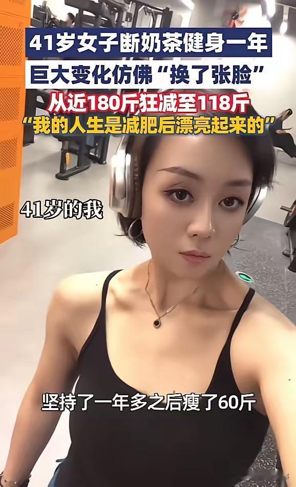 太有毅力了!贵州贵阳,一女子因过度肥胖,被医生严肃建议减肥后,开始狠心戒掉了爱喝的奶茶饮料,严格管控饮食,经常锻炼得满头大汗,坚持一年多后,竟瘦了足足60斤!不仅各项指标正常了,还“换了张脸”!网友:手里的零食不香了! 这位贵阳大姐今年41岁,减肥前快180斤了,平时走个百八十米就喘得不行,去医院体检,单子上好多指标都超标,医生直接跟她说,再不减肥,身体迟早要出大问题。她以前是个奶茶控,一天一杯都算少的,珍珠、芋圆加满满料,甜的齁人也爱喝,再加上不爱动弹,体重就跟坐火箭似的往上窜。真要戒奶茶那阵,头半个月差点熬不住,晚上躺床上翻来覆去想那口甜,手都摸到手机想点外卖了,最后还是咬着牙放下了。 之后她就扎进健身房了,刚开始连跑步机慢走十分钟都腿软,汗顺着脸往下淌,衣服湿得能拧出水来。但她没打退堂鼓,先从简单的有氧练起,慢慢再加力量,有时候练得胳膊腿酸得抬不起来,晚上睡觉都难受,就拿泡沫轴滚一滚,第二天照样去。吃的方面也管得贼严,油炸的、甜的全戒了,三餐就吃粗粮、鸡胸肉和水煮菜,偶尔馋了想吃口白米饭,都得数着粒往嘴里送。身边人都觉得她撑不了仨月,毕竟减肥这事儿,没几个人能坚持下来。 结果她硬是扛了一年多,体重从180斤掉到118斤,整整60斤肉没了,就跟身上卸了个大包袱似的。以前买衣服得挑最大码,还总嫌勒,现在穿S码都松松的;以前拍照总往人群后面躲,现在对着镜头敢咧嘴笑,她女儿抱着她直喊:“妈,你现在也太好看了吧!”她自己也说,是减肥之后,人生才真正漂亮起来的,这话里的辛苦,也就她自己最清楚。 不过网上也有不少人吵吵,有人说她这么快瘦60斤,肯定是极端节食加猛运动,伤身体,普通人学不来;还有人说,中年女人这么拼减肥,是不是被身材焦虑给绑住了?在我看来,这大姐减肥根本不是为了好看给别人看,就是为了自己的身体。医生都发话了,她再不减,健康都没了,这跟身材焦虑压根不沾边。那些说“没必要这么拼”的人,估计没体会过胖得喘不过气、买衣服没合适尺码的滋味。 当然,我也不建议大家照着她的法子来,每个人身体不一样,饿肚子减肥肯定不行,运动也得慢慢来。但她身上那股不服输的劲儿,是真的让人佩服。41岁又咋了?不是说上了年纪就只能躺平,她用一年时间证明,只要真的想改变,啥时候开始都不晚。 最后我想问问大伙儿,你们咋看这位大姐的减肥事儿?你们觉得中年人减肥,到底是为了健康还是为了颜值?要是换做你们,能为了减肥戒掉最爱吃的东西,坚持一年天天运动不?