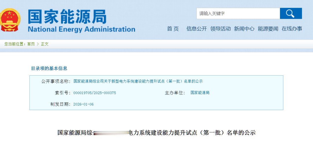 2026年1月8日,国家能源局发布首批新型电力系统建设能力提升试点名单,43个具体项目与10个试点城市同步亮相。