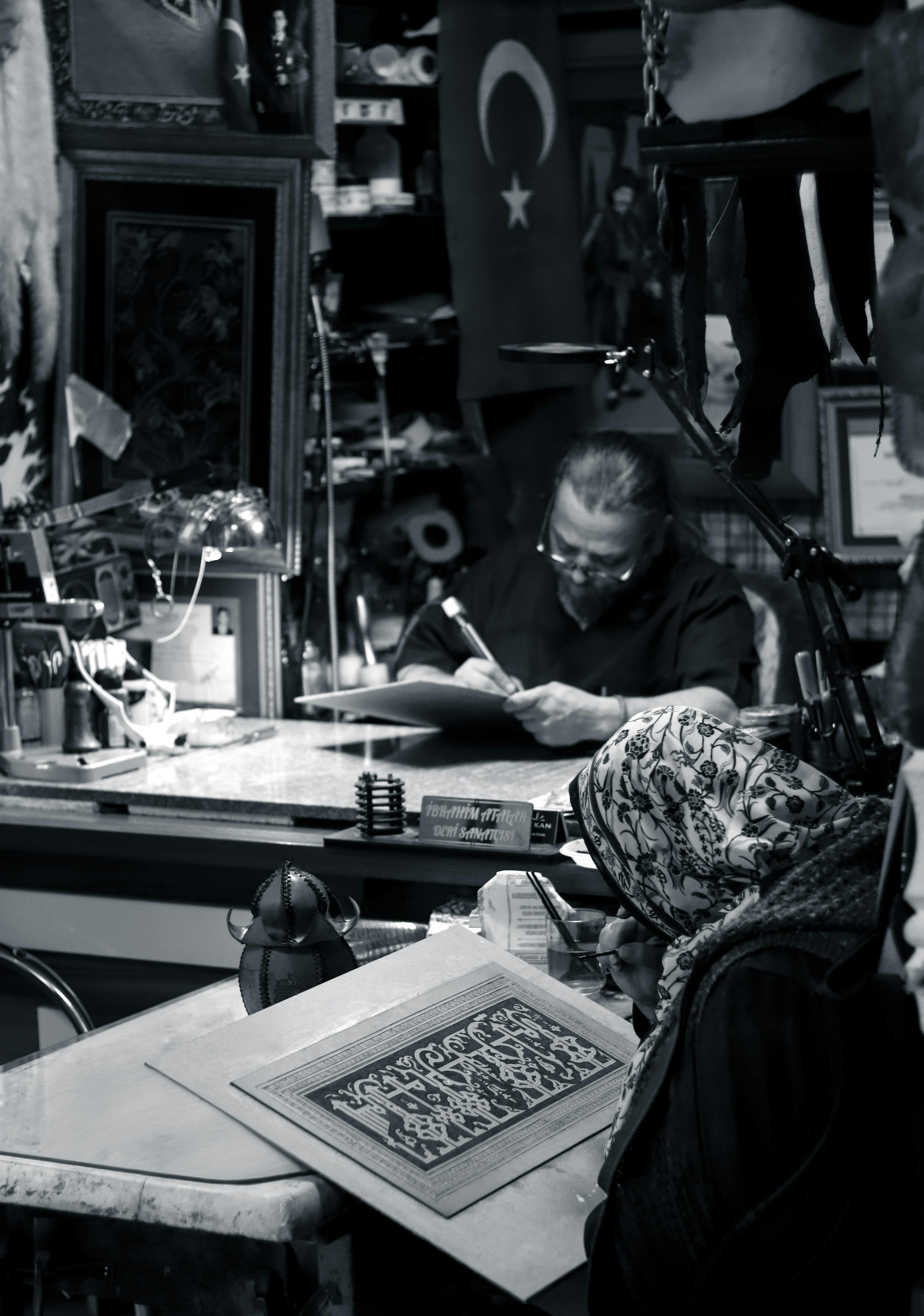 线条与透视:利用摊位的延伸感、悬挂的商品形成的线条,引导观众的视线深入画面,创造纵深感。