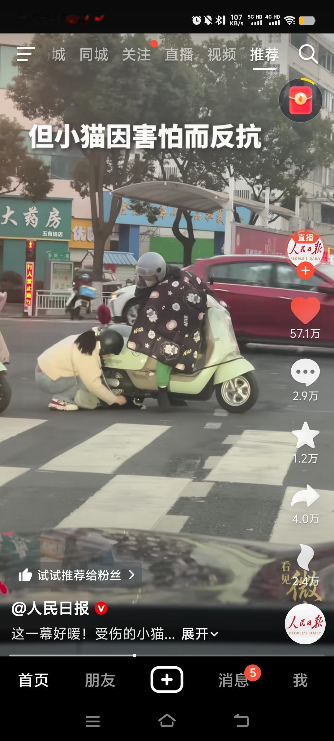 善良的女子路遇一只受伤的猫咪,再车流中穿梭,随时都有危险发生,这位女子停下电动车上前想到抓住猫咪,奈何猫咪因为恐惧反抗,女子在寒冷的冬天脱下外套包住了小猫,带回家了,她一定会为小猫咪疗伤,善良的人终将有好报!救助猫 小猫救助 猫救助 救猫暖心瞬间