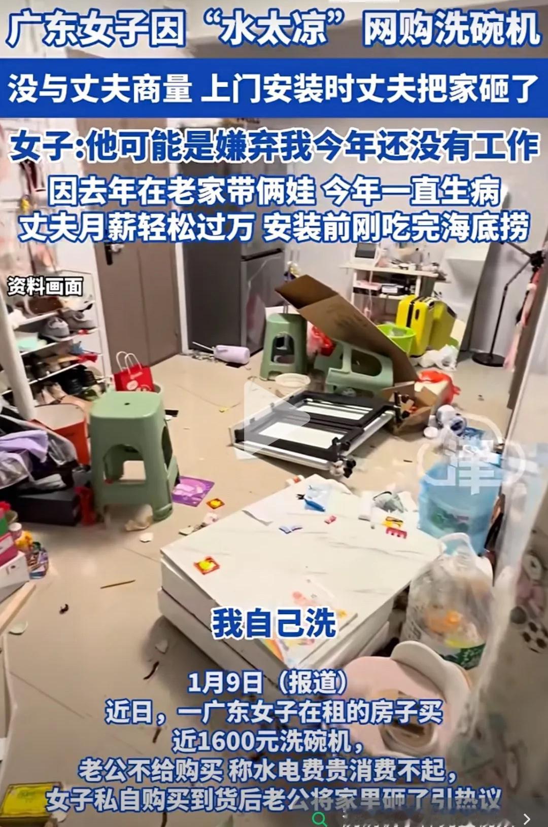 难怪男子情绪会崩溃, 不是嫌妻子花了1500元买了洗碗机, 而是因为她就没想好好过日子。 要知道两人是租的房子,女子没有工作,有两个孩子,还有负债,可想而知这名男子的压力有多大。 听他妻子说,他一个月有1万元的工资,但刨去房租、负债,再加上两个孩子和妻子的开销,还能剩多少。 对于这样的家庭而言,1500元真的不算是一个小数目了,而妻子却商量也没商量,自行就购买了洗碗机。 更何况她也没有工作,每天抽出10多分洗洗碗也不算费事吧。 这个洗碗机或许就是压垮男子的最后一根稻草吧。