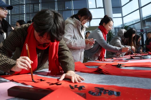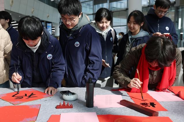 1月9日,华东师范大学一年一度的传统文化活动“人人写春联”在闵行校区图书馆举行。师生们铺展红纸、研磨挥毫,在横竖撇捺间体悟文化之美,以笔墨传递奋进力量、送出新春祝福。