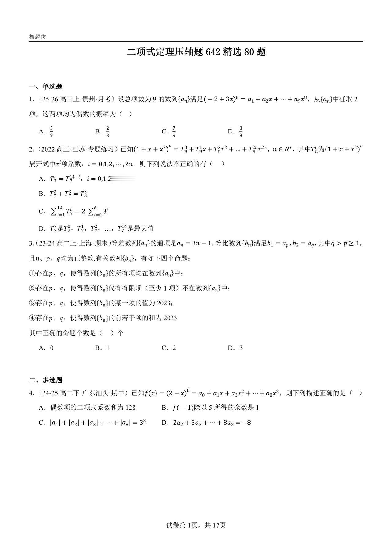 二项式定理难题 安排上了❤️ 任何板块都可以出压轴题✧٩(ˊωˋ*)و✧