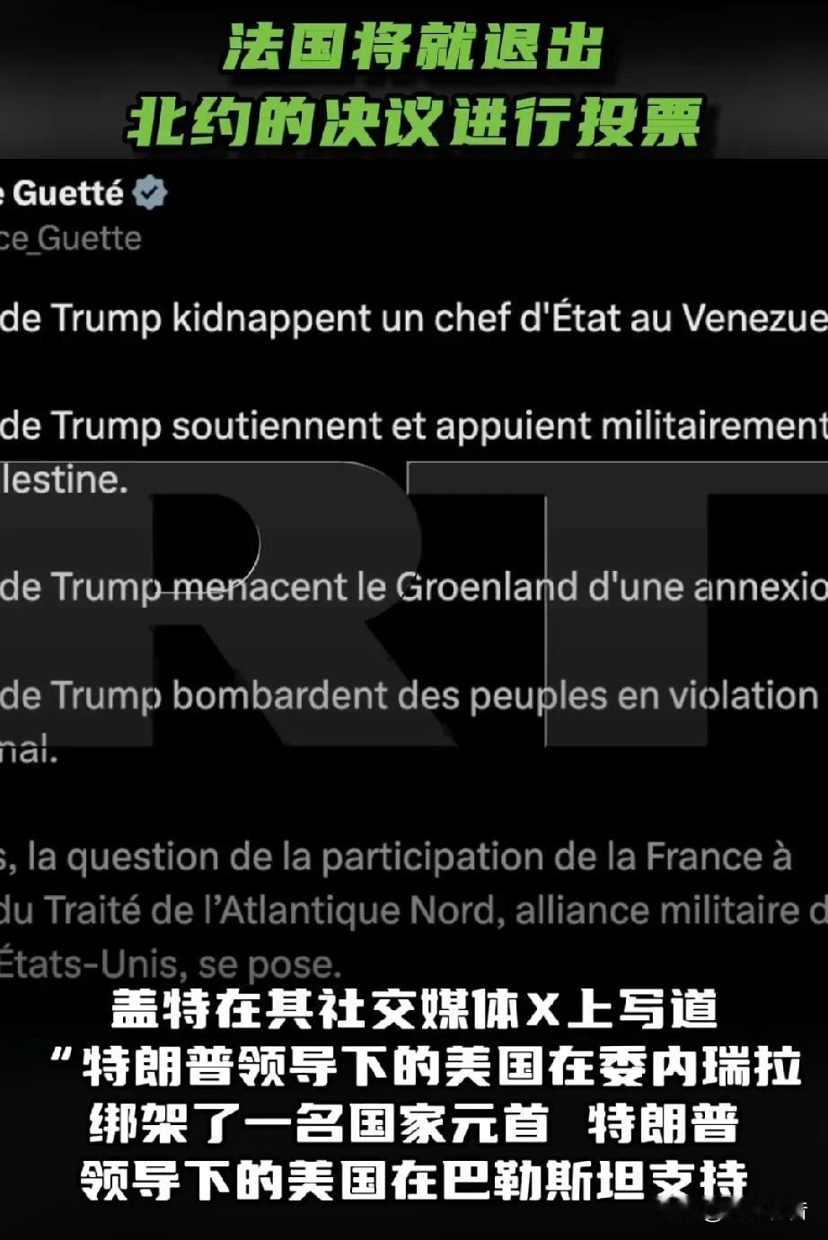 法国将就退出北约问题进行议会表决? 据《今日俄罗斯》报道,1月9日,法国国民议