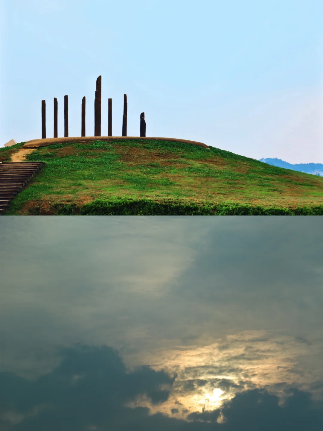 5000年前的遗址,残留一些城墙和土堆,仿古茅草屋、大片草坪还是蛮适合牛马🐮🐴