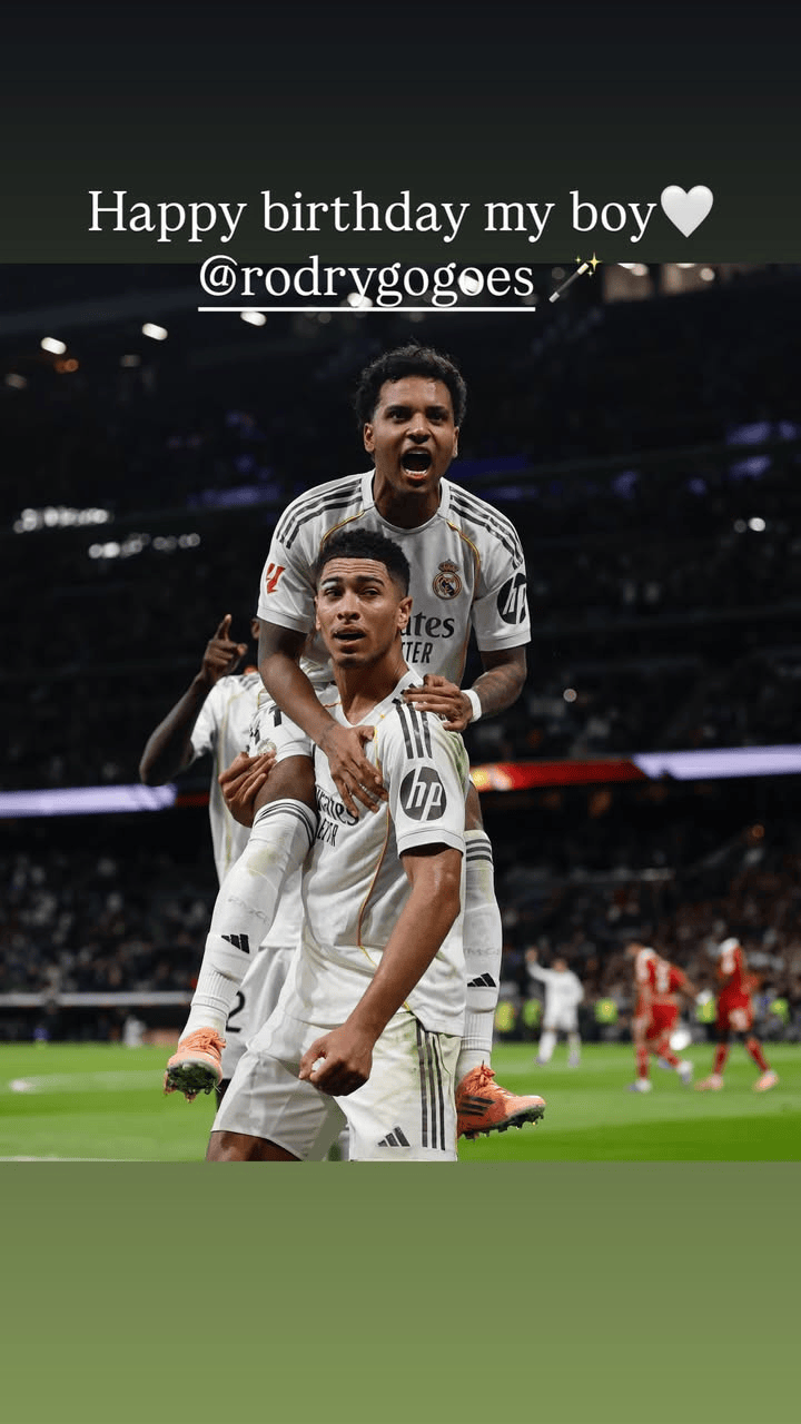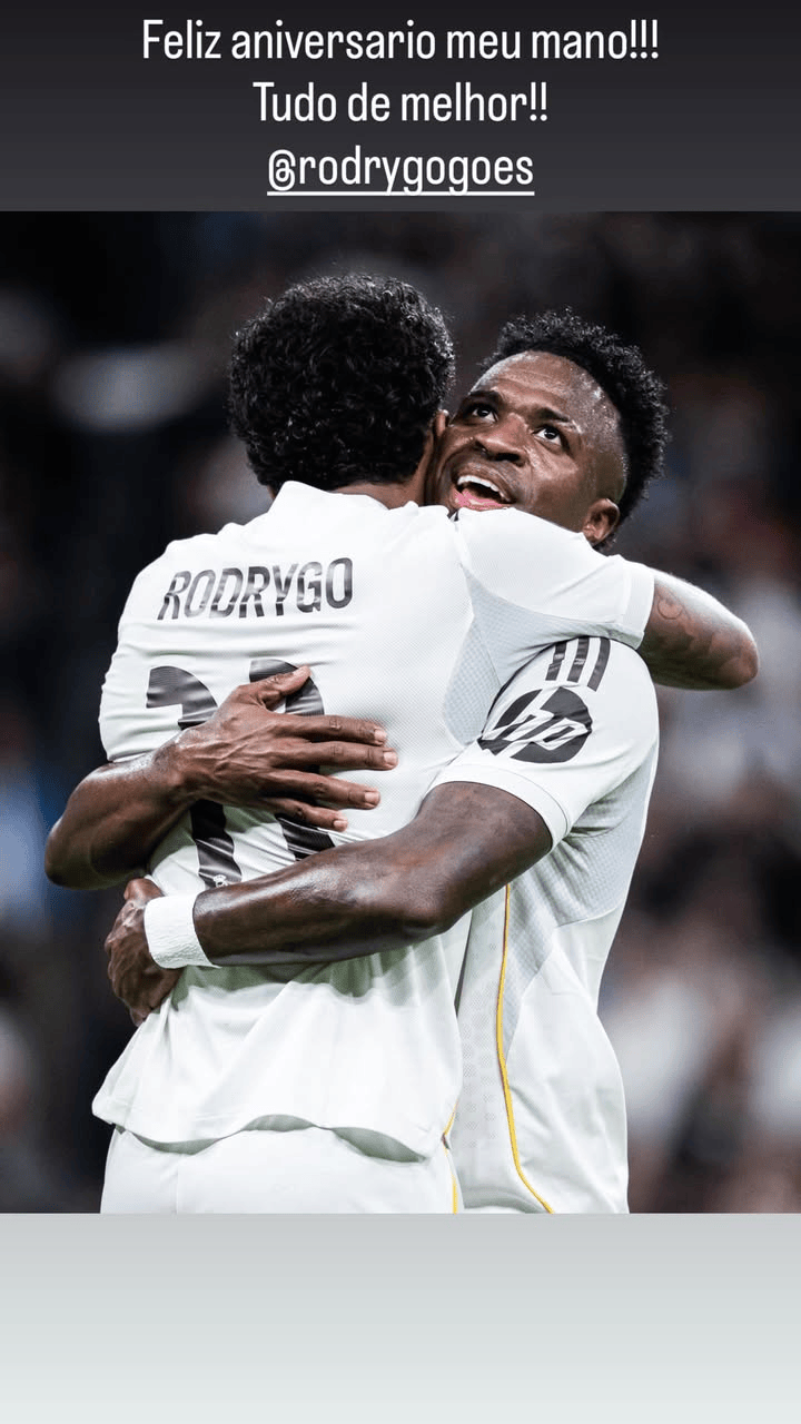 维尼修斯、贝林厄姆更新社媒,为罗德里戈送上生日祝福