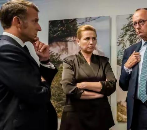 马克龙、墨茨、弗雷泽里克森三人在讨论什么问题呢? 三人都是一脸严肃表情,是不是问题还没讨论出解决的对策来? 马克龙用手摸下巴,陷入沉思当中啊! 弗雷泽里克森斜视的眼神显得表情格外严肃啊! 墨茨脸上的表情则更多的是无奈吧?