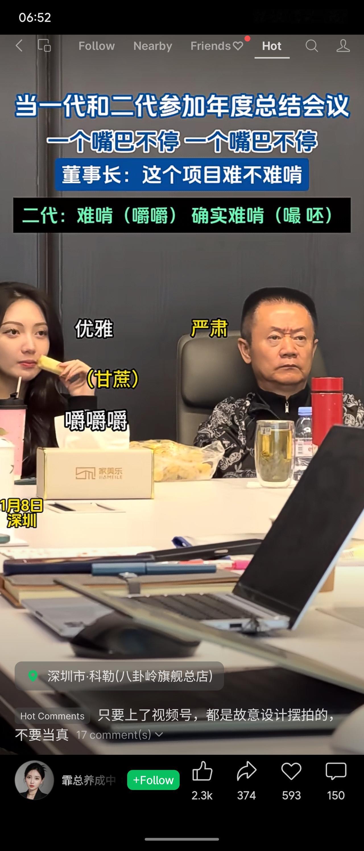 冬日生活打卡季董事长在年度会议上问项目是否难“啃”,作为二代的参会者一边嚼着甘蔗,一边含糊回应“难啃,确实难啃”。画面用啃甘蔗的动作双关项目棘手,以幽默方式展现了会议中的代际差异与轻松一刻。网友调侃这怕是设计好的“优雅”摆拍。