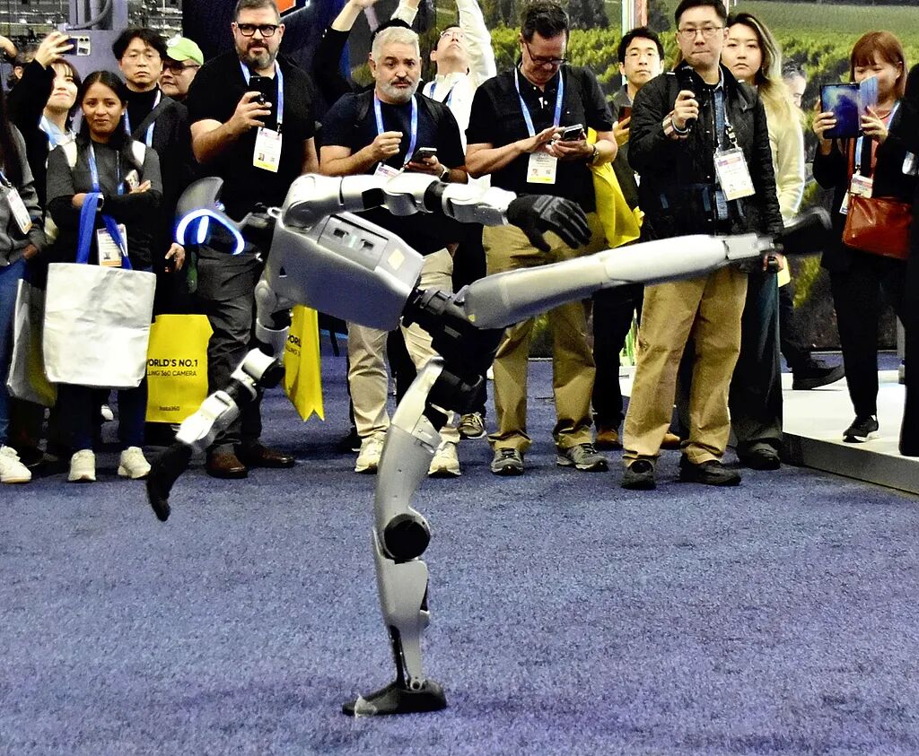 在展会现场,这些机器人各干各的,打拳、跳舞、舞狮、下棋、调酒、叠衣服,非常热闹。新加坡机器人Sharpa灵巧的双手,可以一张张清点纸牌和传单;宇树机器人把拳击比赛打到了拉斯维加斯,吸引了大量围观,甚至被跃跃欲试的群众发展成人机格斗。